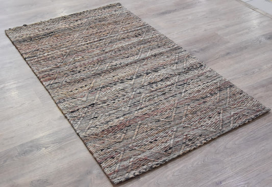 Timbergirl Beige Natural Jute and Leather Handmade Rug