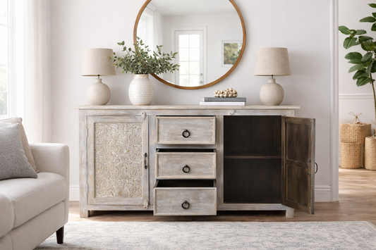 Timbergirl Hand-carved Antique Finish 2-door Sideboard Cabinet