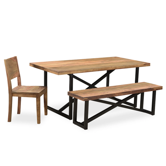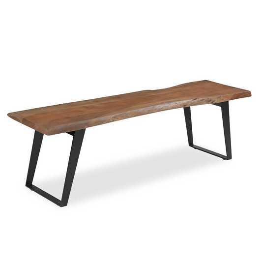 Timbergirl Sheesham Wood Live Edge Bench with black iron legs