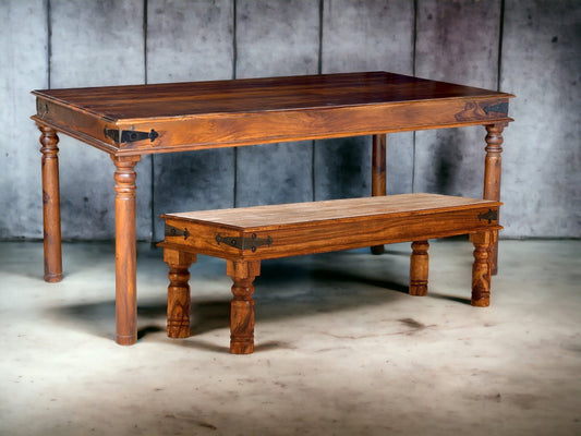 Timbergirl Mango Wood with Silver Legs 3 Piece Dining Set - 6 SEATER