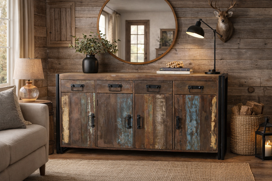 Old Reclaimed Wood 4 Door 4 Drawer Sideboard