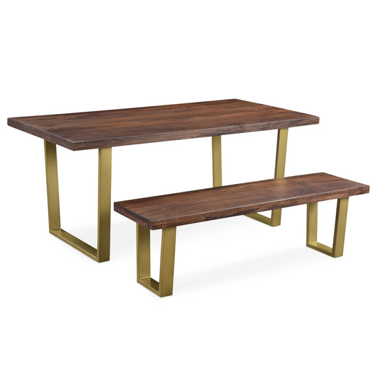 Raven Grey Mango Wood Dining Table With Gold Iron Legs