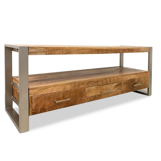 Industrial Reclaimed wood 3 Drawer TV stand with silver legs
