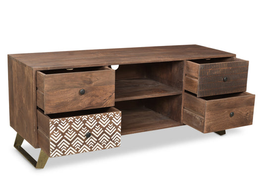 Reclaimed Mango Wood TV Cabinet with Wood Drawers