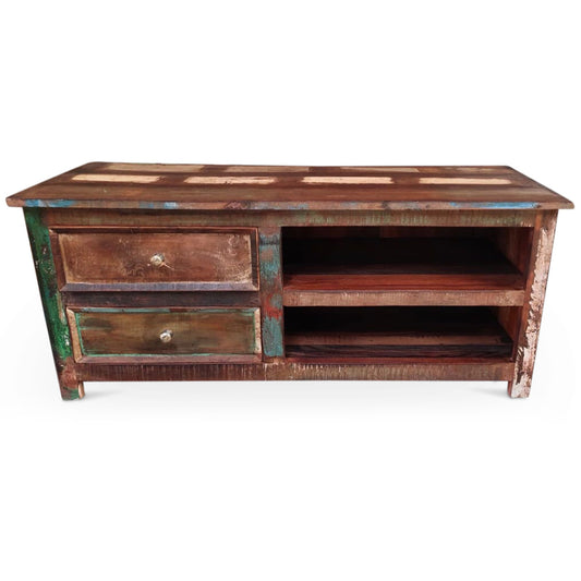 Timbergirl Reclaimed Wood TV cabinet with Double Drawers and Shelves